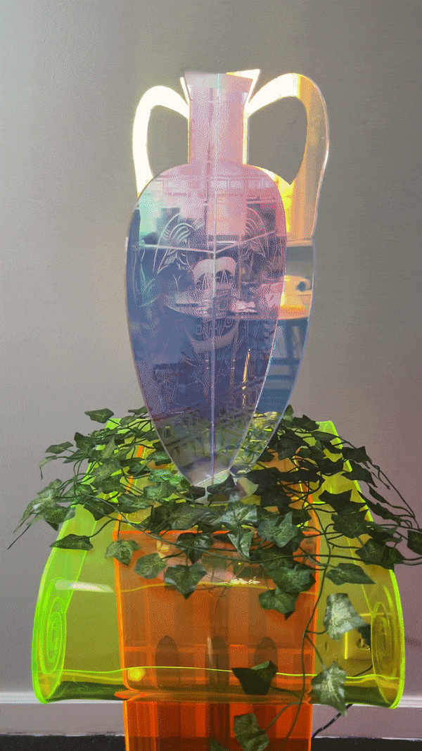 P: What I am always excited to do is learn something new or achieve a new skill. This piece for me was a lot of that. I have never applied these biomaterials to my artwork before [or worked] with screens like this [to make] a video sculpture. I’m also brand new to animating, [using] Procreate, [and] making video content. So all [the] parts of this piece I [was] just learning as I [was] making.