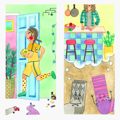 Actually, my past work is usually very colorful, humorous and illustrative in style. I’ve gotten feedback that it’s very good for kids, so when I was told the prompt was fear, I felt like this was off-brand for me. I’m usually like a rainbow art teacher. But then I thought about it harder, and actually, a lot of the humor in my past work is a little bit self-deprecating [in] exploring weird thoughts, fears, and anxieties I have. So I’ve been engaging with fear in my work this whole time, which is something I didn’t realize initially.