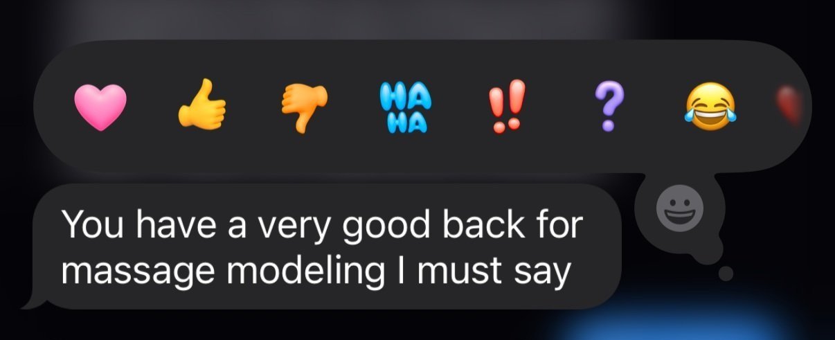 Back to the cupping of it all, my friend and her mother popped them on me, went to go put the cups on my roommate, came back four minutes later and said, “Oh! That got really dark really fast.” And of course, I said the silliest thing ever in this sort of situation.